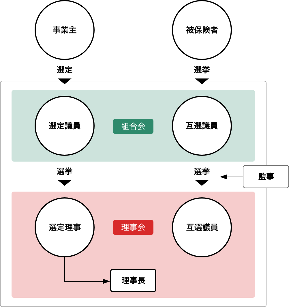 組合会は事業主が選んだ選定議員と、被保険者であるみなさんが選んだ互選議員によって構成されます。両議員の人数は同数で、予算・決算、事業計画などを審議します。